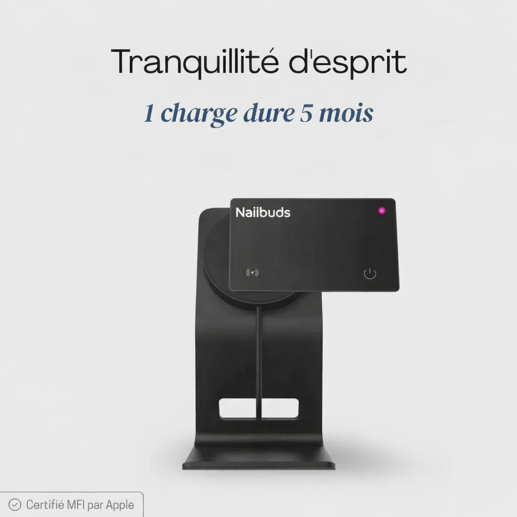 Nalibuds est conçue pour durer jusqu’à 5 mois avec une seule charge.