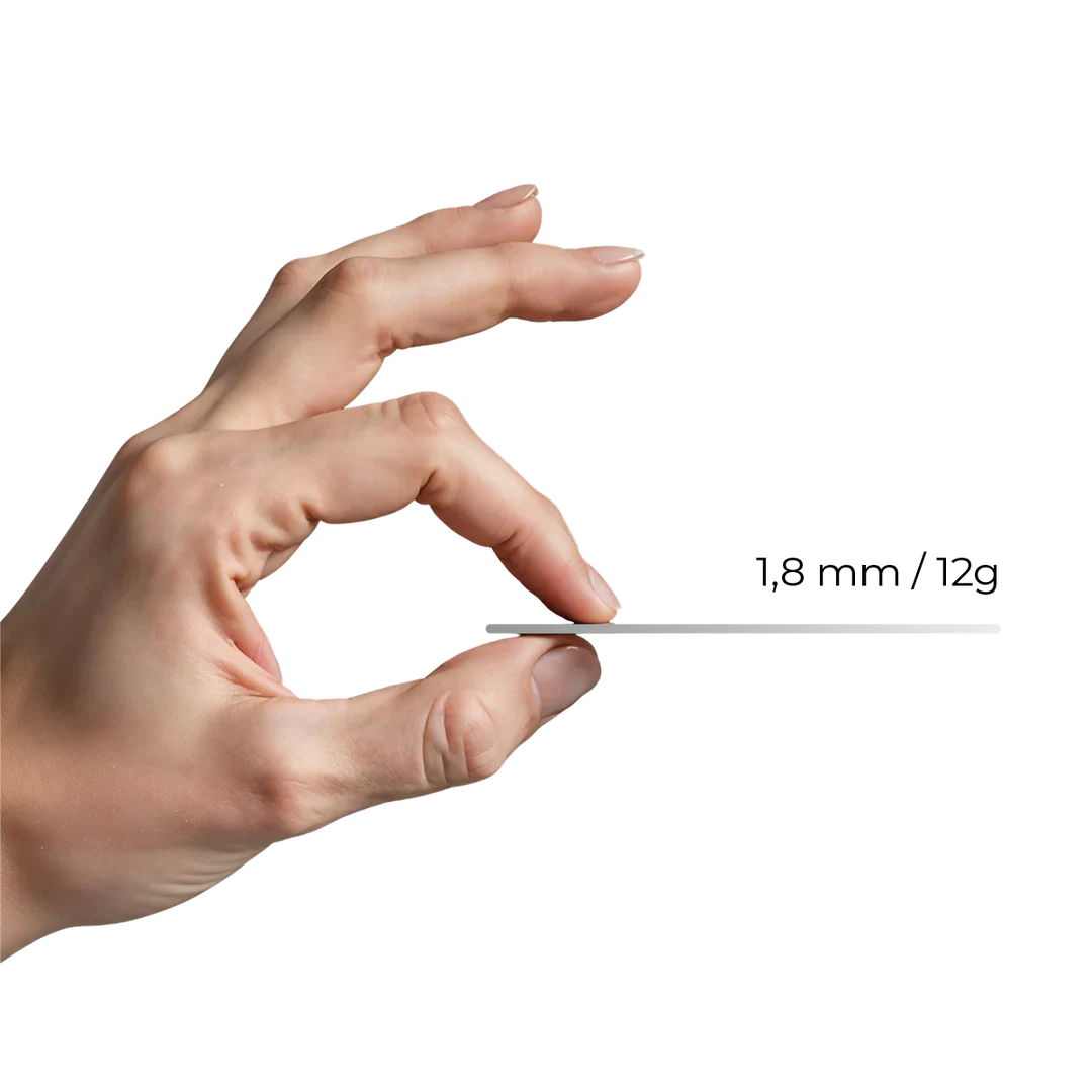 Seulement 1,8 mm d’épaisseur. Aussi fine qu’une carte bancaire, mais infiniment plus intelligente.